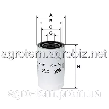Фільтр оливний двигун 92095E WIX для тракторів, комбайнів, бульдозерів, екскаваторів та ін. Артикули: 4897898, 2992242, EA504074043,.