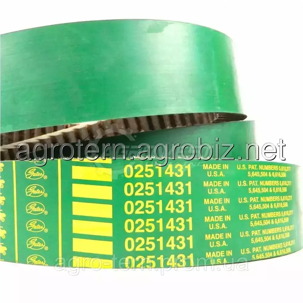 Ремень 0251431 Gates Agri. Тип: зубчастий варіаторний комбайновий ремінь профілю HQ. Каталонні номери: John Deere серії 9000. Сплячість зерновубіркових комбайнів H208431, H211764, H211764. Аналог.